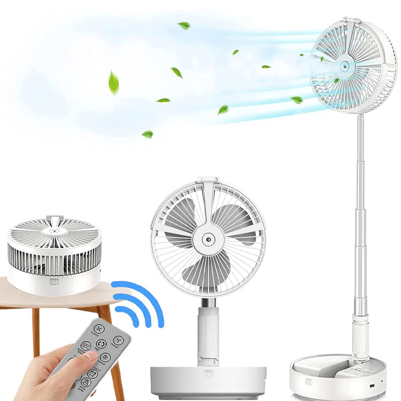 回転するので様々な角度に風を送ることができます。高さは 36cm から最大 86cm まで伸縮自在です。折り畳みサイズは 196×85mm 。軽量でコードレスなので持ち運びにも便利です。
